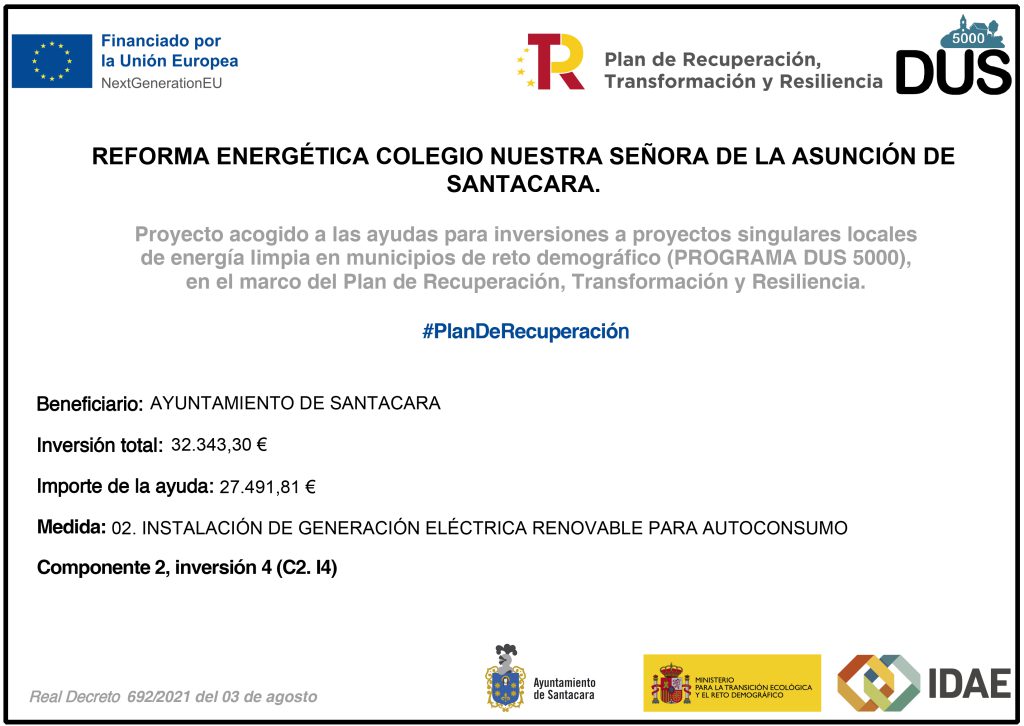 PROYECTO REFORMA ENERGÉTICA COLEGIO PÚBLICO DE SANTACARA